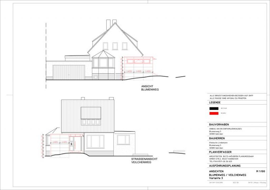 Ein Einfamilienhaus in Gehrden bei Hannover wurde den veränderten Bedürfnissen der Bewohner angepaßt und erhielt im EG einen Anbau / Erweiterung für Sanitärbereiche und Eingang.
