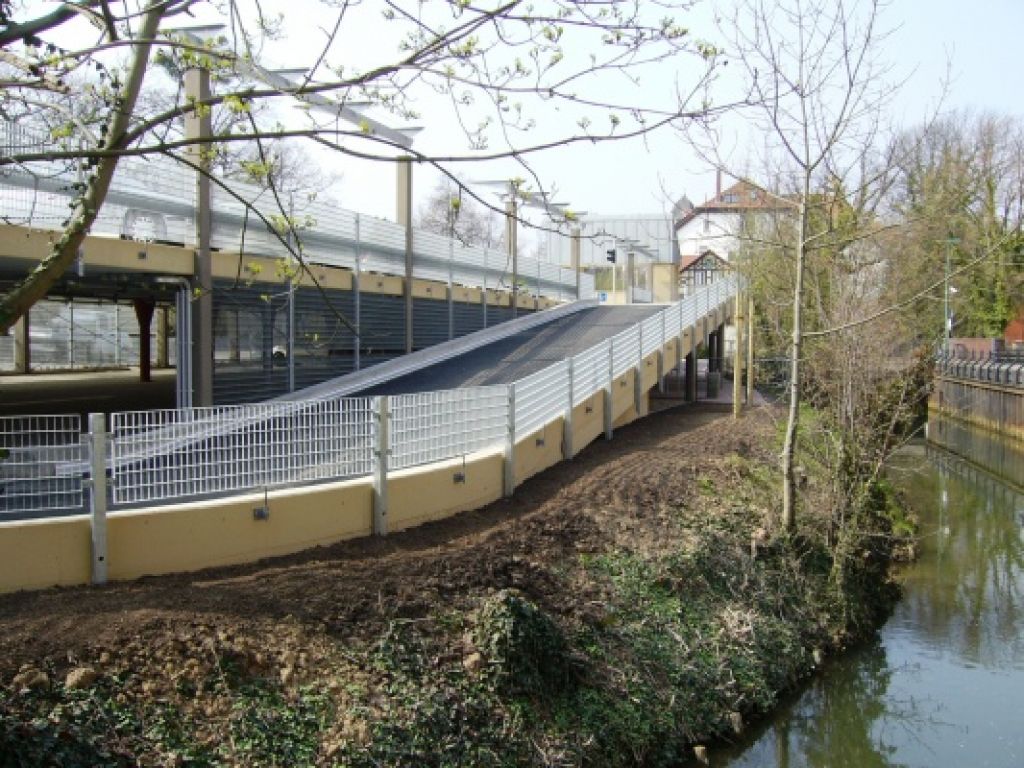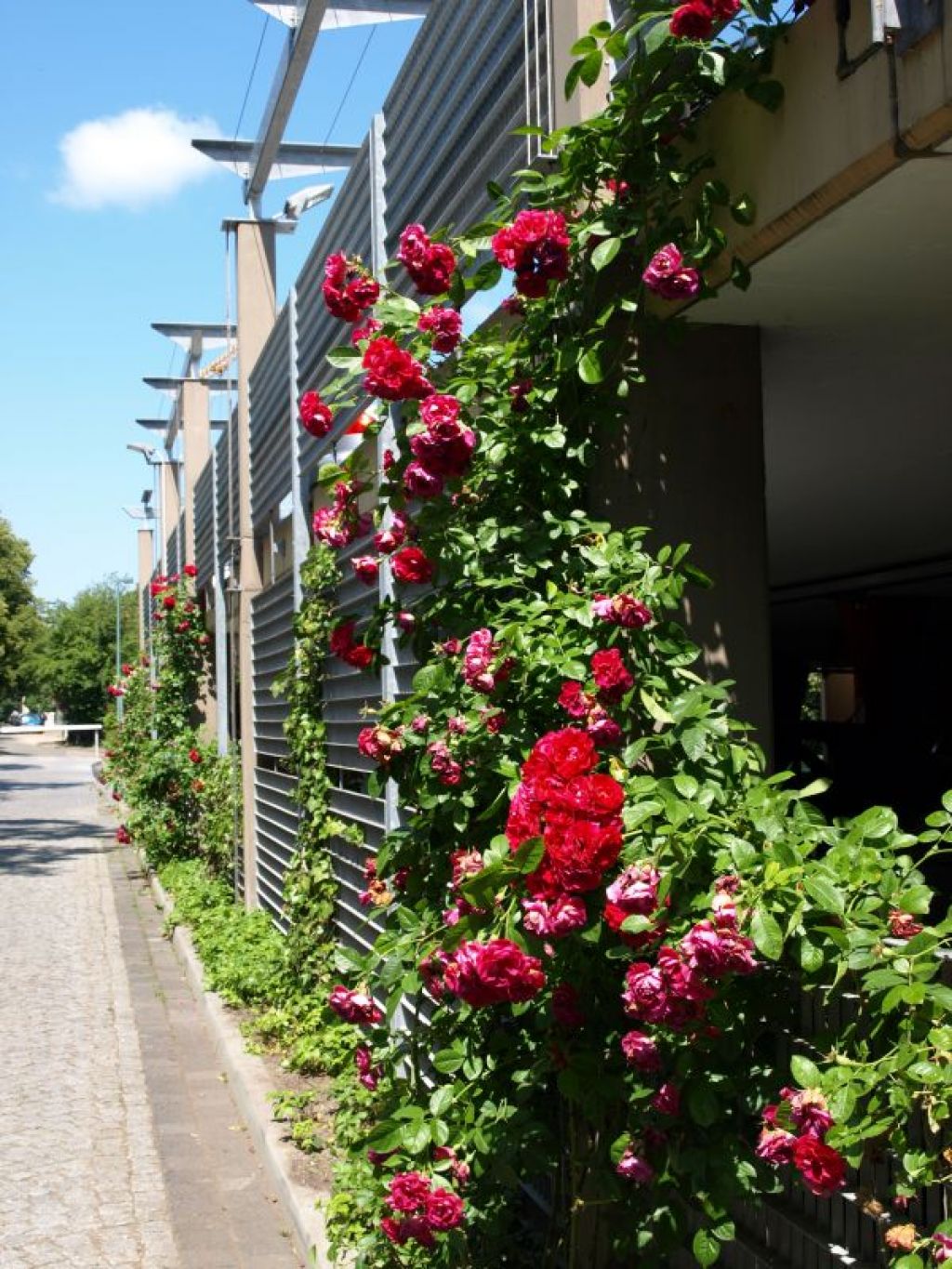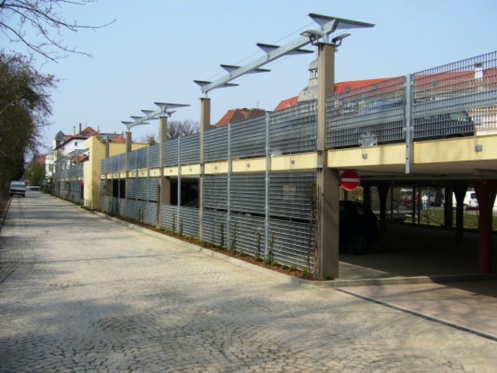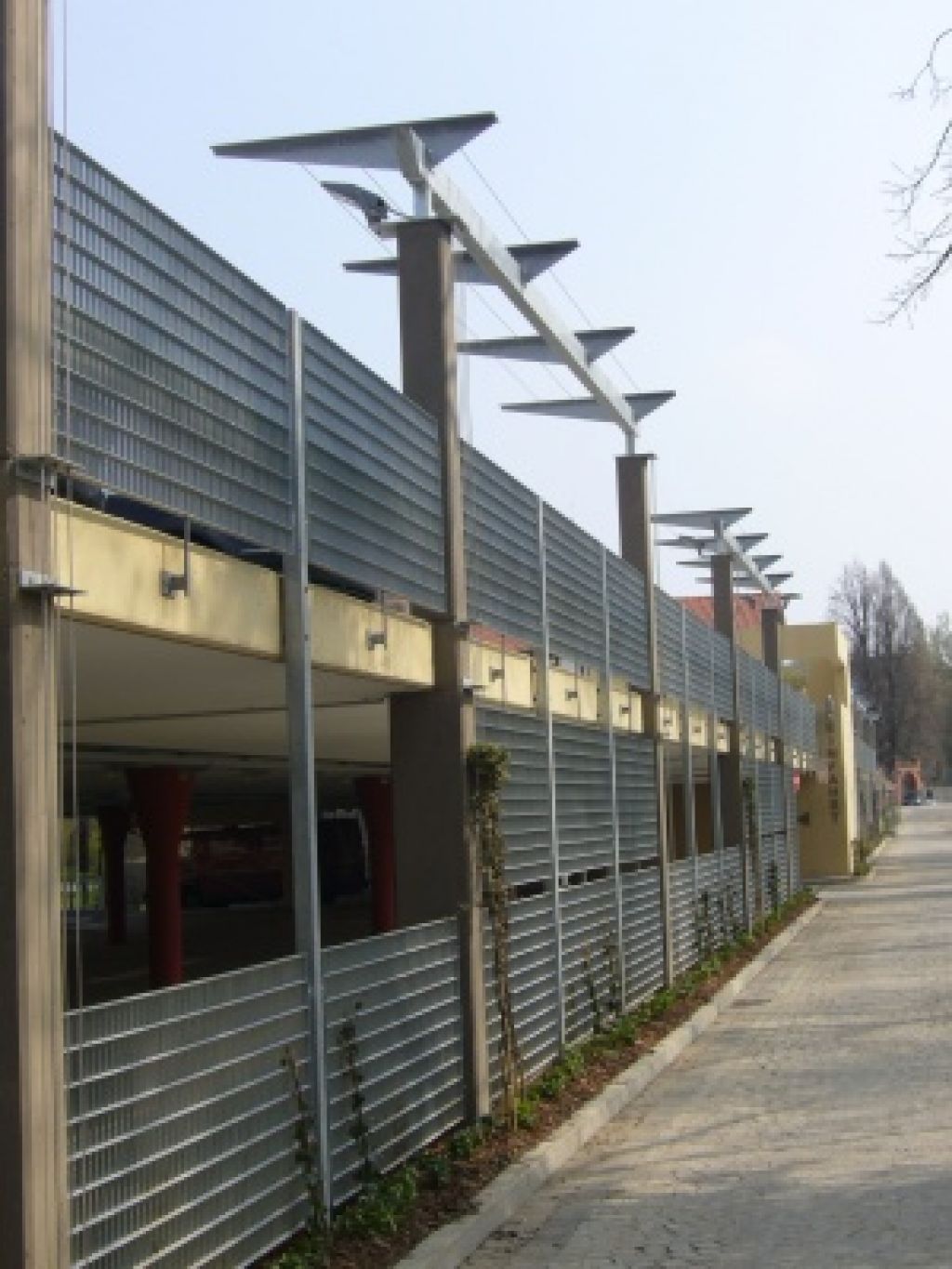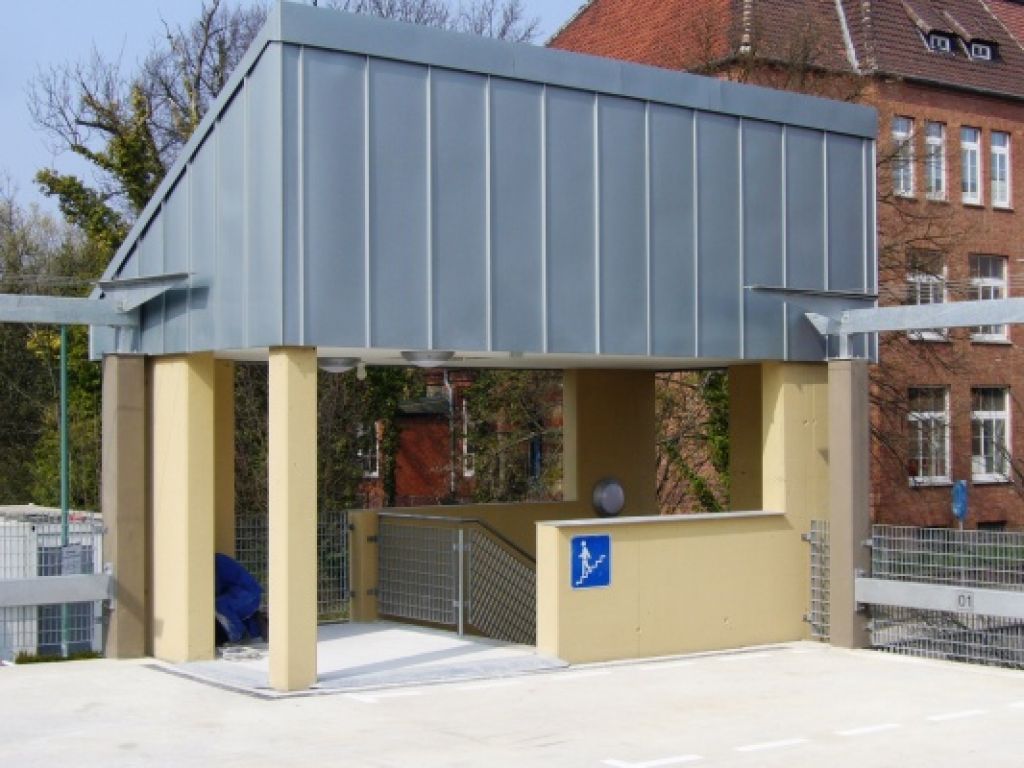 Die Fassade erhielt eine Stahlkonstruktion, die im Laufe der Zeit von Grünpflanzen berankt wird und so eine Einbindung in den angrenzenden Grüngürtel des Langelinienwalls erfährt. Blickachsen von Langelinienwall zur Godehardikirche wurden berücksichtigt und freigehalten.