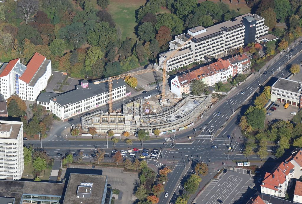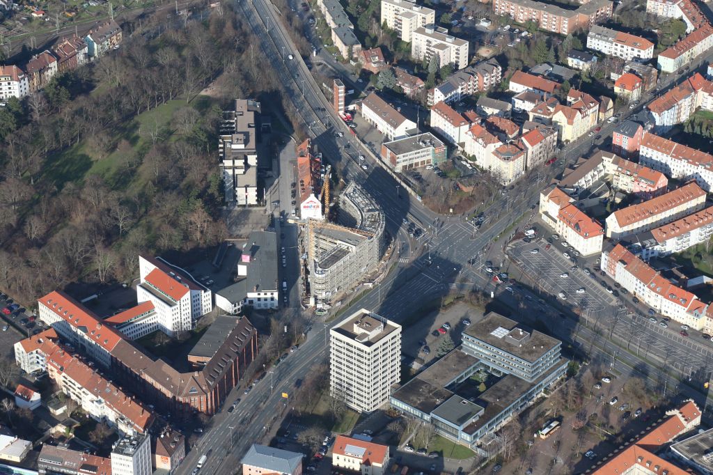 In exponierter Lage an einer Hauptzufahrtsstrasse in Hildesheim bildet der Neubau des Jobcenters eine klare städtebauliche Kante.