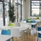 Eine klare Formensprache sowie die Verwendung hochwertiger und authentischer Materialien vermittelt Wertigkeit, Transparenz und Klarheit bei gleichzeitiger hoher Funktionalität. Farbige Akzente unterstützen die freundliche und offene Stimmung der Räume.