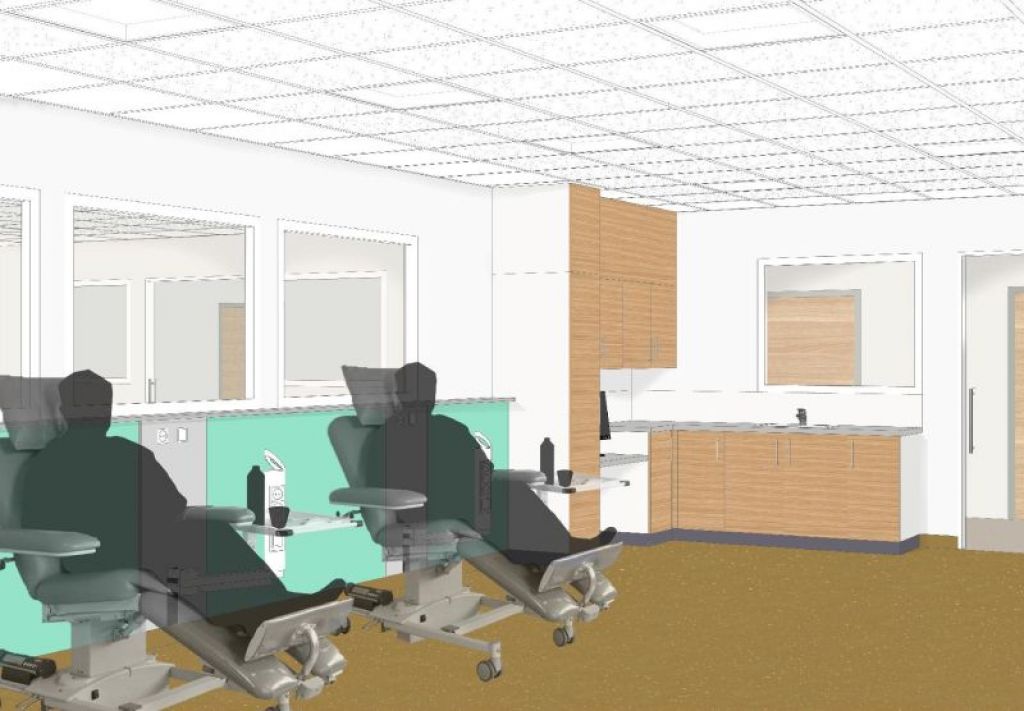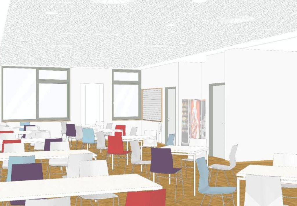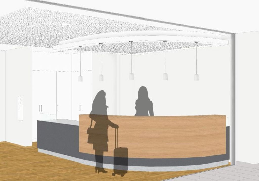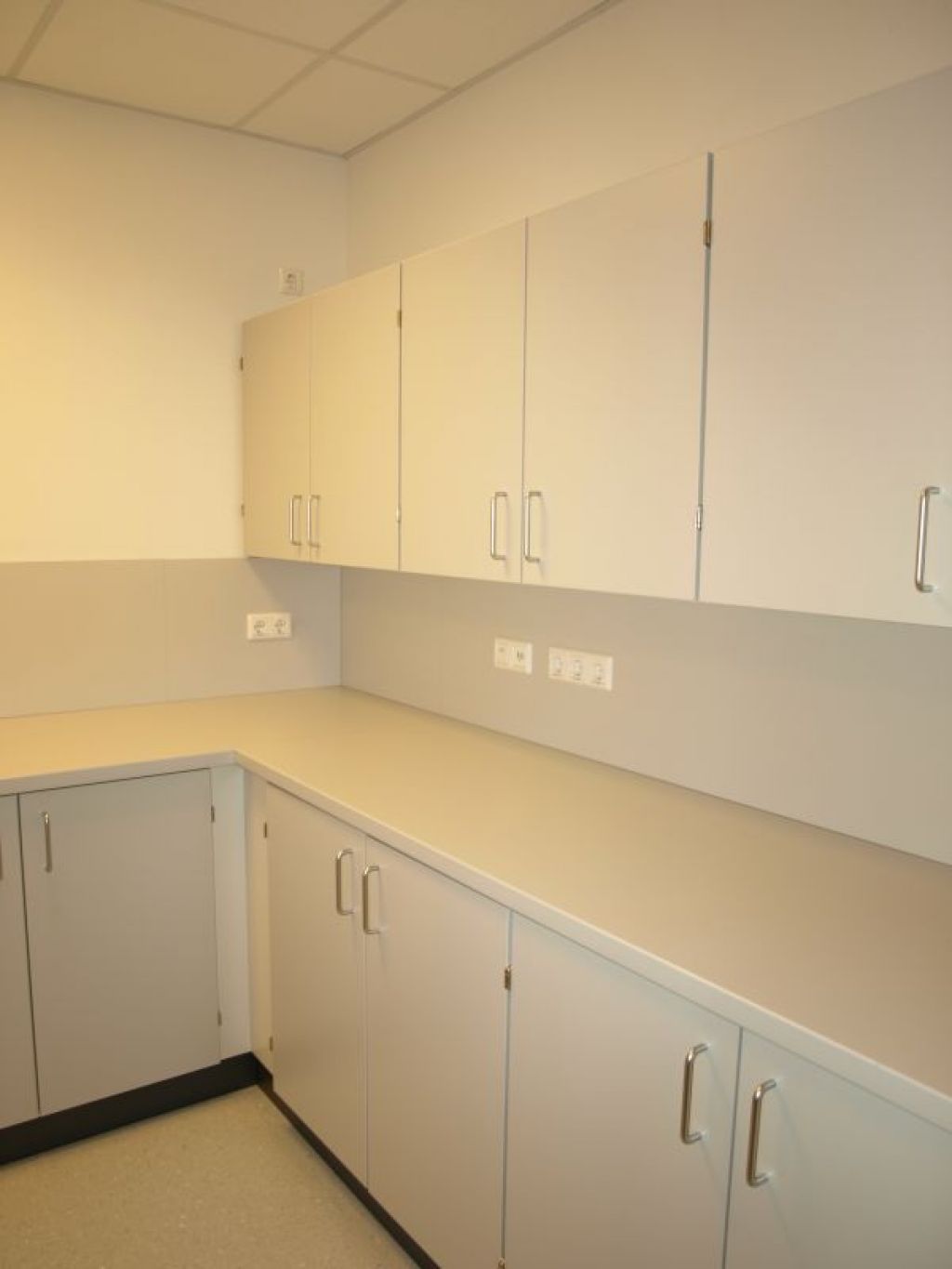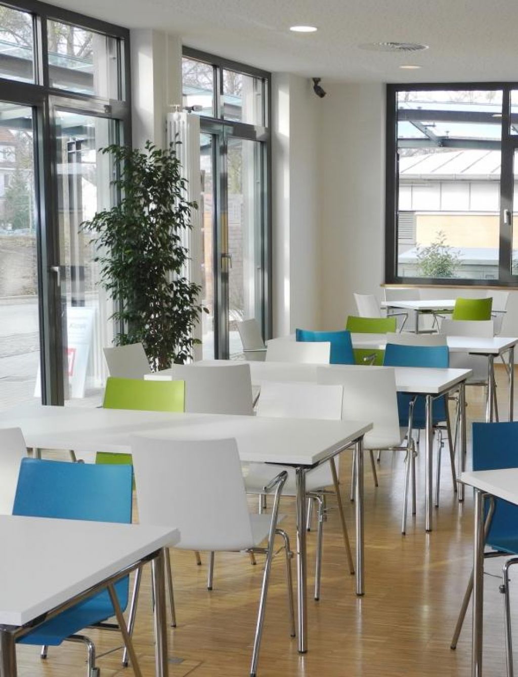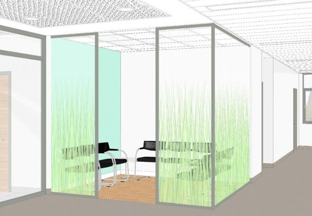 Im Innenbereich des Vinzentinums wurde sowohl feste Möblierung als auch die Objektmöbel für Empfangsbereiche, Anmeldetresen, Funktions- und Personalräume, Wartebereiche, Cafeteria, Arzt- und Untersuchungsräume in gestalterischer Einheit mit dem Gebäude geplant.